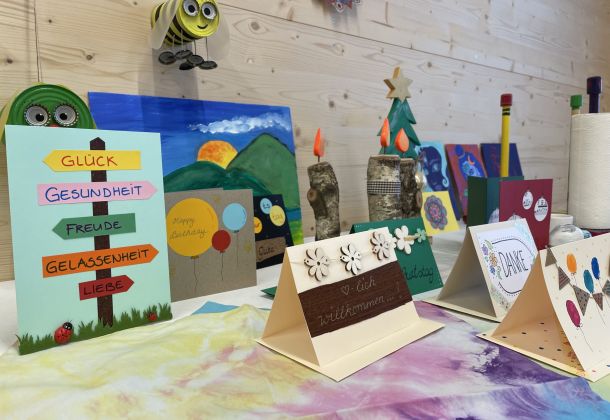 Ohne Leistungsdruck führen Geselligkeit, Geborgenheit  und Spass  im Krea-Atelier zu originellen Kreationen